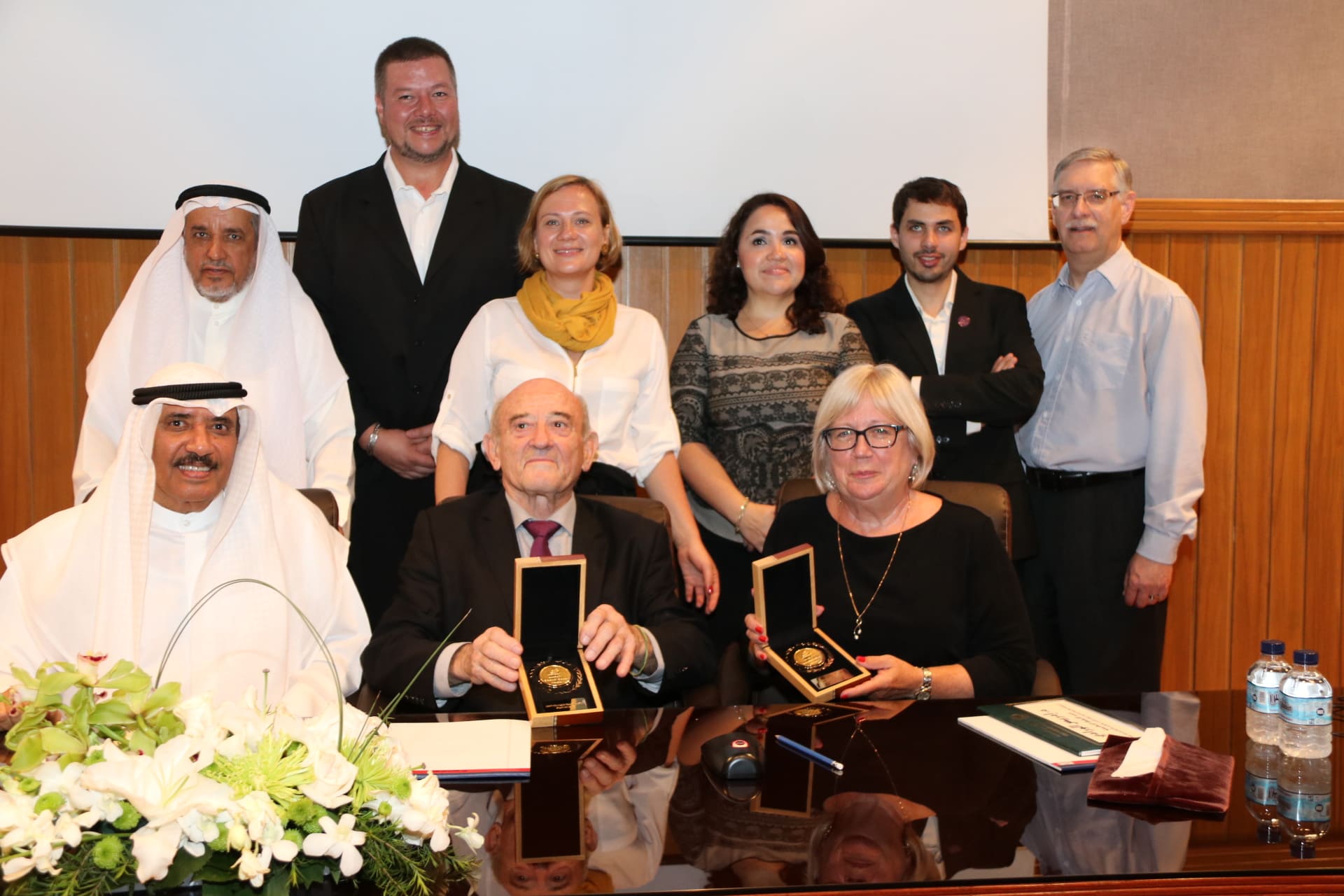 MILSET Honorary President Mr. Jean-Claude Guiraudon and MILSET General Secretary and Treasurer Mrs. Carole Charlebois received the MILSET grand prize medal during the "Youth Successes" forum opening ceremony for their great efforts, unlimited generosity and sincere dedication to the organisation. Kuwait. April 2018