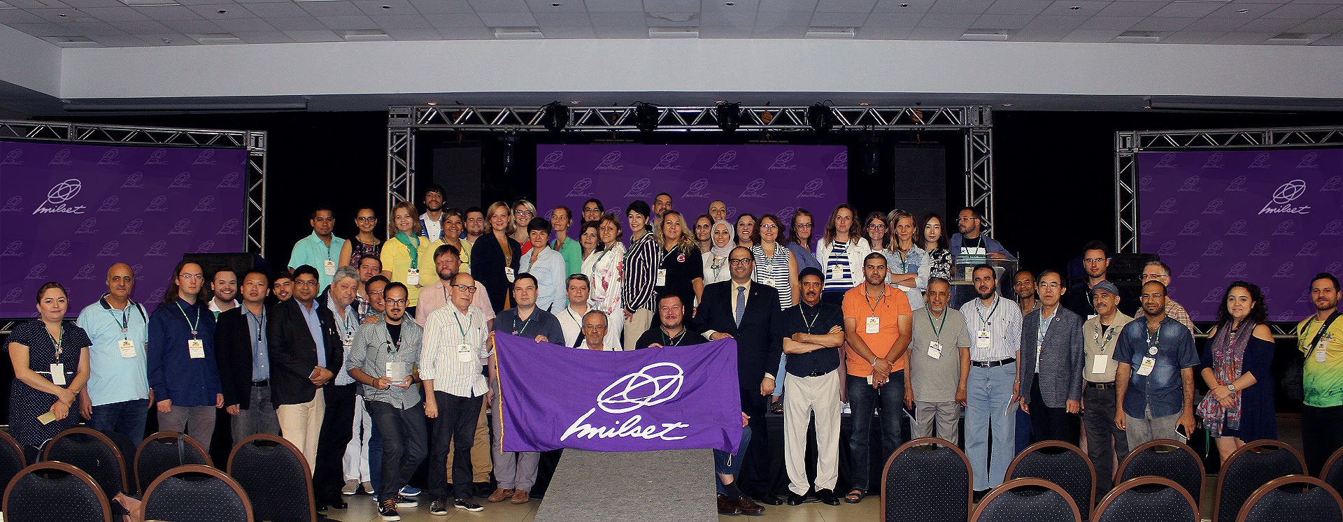 Carole Aumais developed MILSET logo which represents popular science and youth and suggests the earth with an endless line to reflect the continuity of action and the cooperation among member organisations, two fundamental factors for achieving peace and development.
